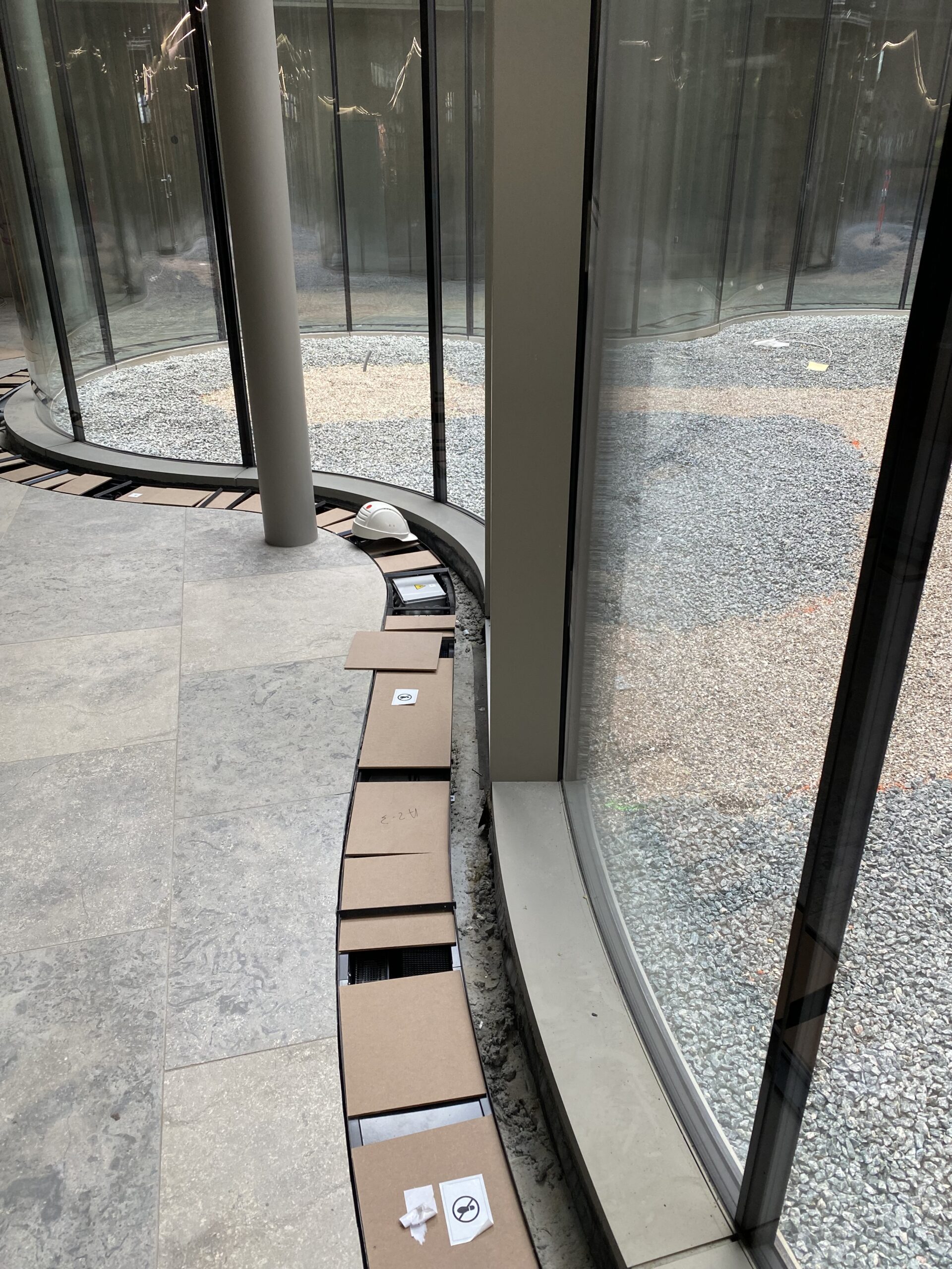 Největší výzvou bylo správné zaměření atypického konvektoru neboli hlavy Mickey Mouse. Pro tento účel jsme museli investovat do speciálního laserového přístroje, který pomocí jednotlivých bodů vytvářel skutečný obrys. Celkem hlavu Mickey Mouse tvořilo 32 konvektorů. Snad složitější, než vyhotovení konvektorů bylo složení mřížek, které se musely ručně doměřovat a zkoušet do jednotlivých segmentů. Celkem jsme na objekt dodali bezmála 100 kusů infloor konvektorů s mřížkami.